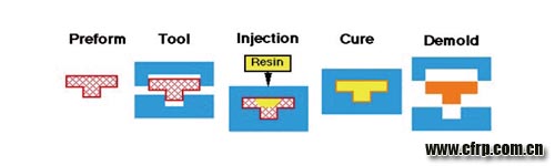 該工藝是將纖維經(jīng)預(yù)成型,預(yù)編織處理,纖維鋪放可設(shè)計,制品受力合理。預(yù)成型纖維體預(yù)先鋪放在模具型腔內(nèi),合模后通過設(shè)備用壓力將樹脂注入模腔,浸潤纖維,固化成型,閉模操作,不污染環(huán)境,采用多模,多工位機械注射模式,生產(chǎn)效率較高。需要樹脂灌注設(shè)備及多套模具,適于中等至大批量生產(chǎn)方式,制品雙面光,尺寸精度高,可做結(jié)構(gòu)復(fù)雜零件及鑲件,如汽車地板、車頂、發(fā)動機罩等,是汽車行業(yè)應(yīng)用最廣泛的工藝。