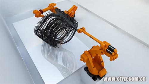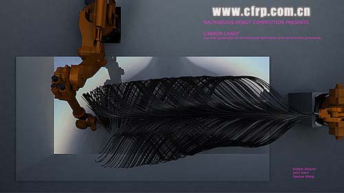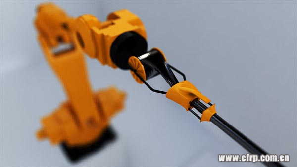 兩個(gè)日本產(chǎn)的Nachi機(jī)器人,首先是Demo的材料,是一種碳纖維-carbon fiber tape??梢栽赨V或是Heat下定型。
