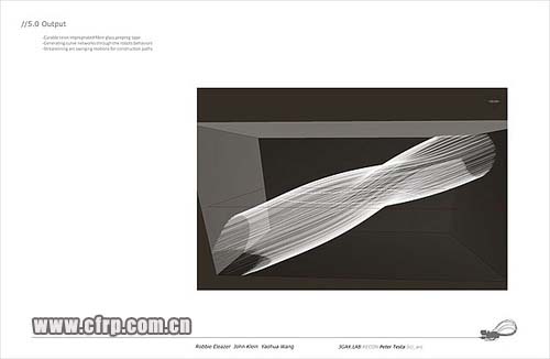 CarbonDesign 的Studio繼續(xù),上一周的時(shí)間,內(nèi)部搞了一個(gè)小的competition,原因是Peter Testa整合了工廠的兩個(gè)機(jī)器人,然后把studio里每三個(gè)人分成一組,要求每組提出一個(gè)使用機(jī)器人的方法,然后作出Demo。