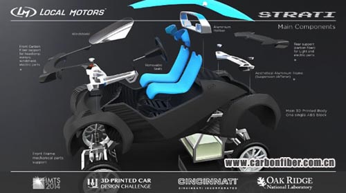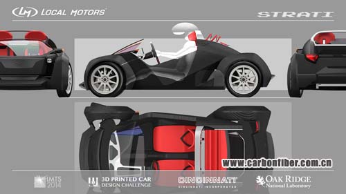 Local Motors方面表示,Strati汽車所用的碳纖維復合材料由Sabic創(chuàng)新業(yè)務部獨家提供。該新型3D打印汽車全身由40個部件組成。其中,13-20%為碳纖維增強型復合材料,87-80%為ABS樹脂。