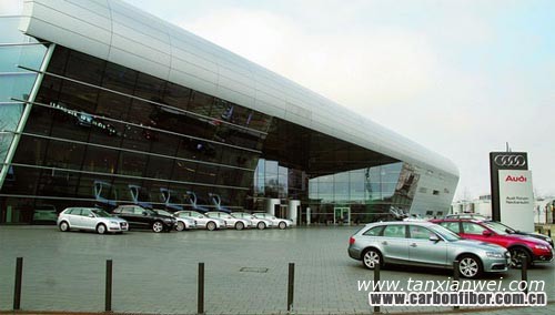 1985年,奧迪總部遷往英格爾施塔特。內(nèi)卡蘇姆工廠目前組裝A6、A8、TT及R8全系。此外,這里還有一個(gè)輕質(zhì)設(shè)計(jì)和實(shí)驗(yàn)中心。圖中奧迪品味車苑是2005年落成的。