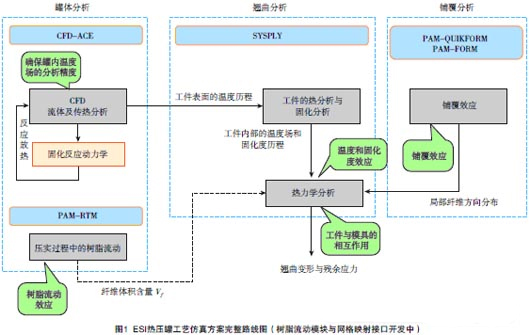 復(fù)合材料的熱壓罐成型工藝過(guò)程是一個(gè)涉及對(duì)流換熱、結(jié)構(gòu)熱變形和固化相變反應(yīng)的復(fù)雜物理化學(xué)過(guò)程。完整的熱壓罐工藝分析方案應(yīng)考慮的因素應(yīng)包括: