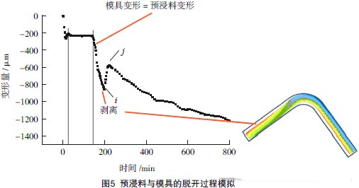 · 模具與預(yù)浸料的相互作用與脫開(kāi)過(guò)程。