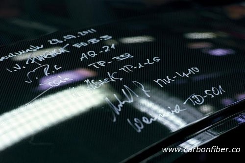 纖維要在不同的溫度和壓力下進行工藝制造,之后將纖維的各種構成要素通過氣化剔除,只剩下幾乎由純碳組成的7微米的纖維,然后將單個纖維捆綁成纖維束或粗紗,粗紗經(jīng)過加工成為特殊未經(jīng)織造的纖維織物,再把纖維織物進行尺寸切割,從而獲得立體輪廓,接著將樹脂原料高壓注射到預成型件內(nèi)部,再對之進行硬化,然后采用水射流切割機進行最后的加工。 123,123