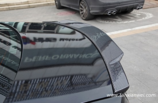 奔馳C74也許一些朋友還不是很了解。C74是來自美國佛羅里達的Renntech推出以奔馳C63 AMG為基礎(chǔ)的寬體改裝版車型。74所代表的意義是指,這款車的后軸距加寬至74英寸(約1880mm)。除此之外,Renntech還賦予了奔馳C74非常多更為兇悍的外觀套件,其中就包括這款造型獨特的碳纖維尾翼。較奔馳C63原廠尾翼,C74款碳纖維尾翼不僅造型更為俊俏,同時結(jié)合空力學(xué)原理能夠為車輛高速行駛提供更加突出的穩(wěn)定性。目前售價為1500元人民幣。