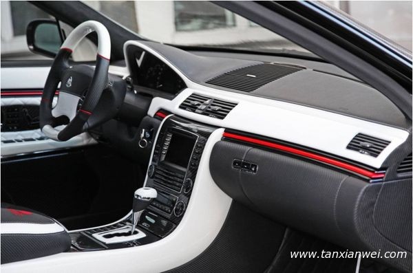 對于車身的改裝添加的部件全部采用了碳纖維材料,包括:前后擋板,新的發(fā)動機(jī)罩 ,行李箱蓋,車尾擴(kuò)散器和后擾流板,另外還未它配備了LED日間行車燈以及24寸輪轂。輪轂的表面經(jīng)過碳處理,并配以白色剎車卡鉗形成了強(qiáng)烈的對比。