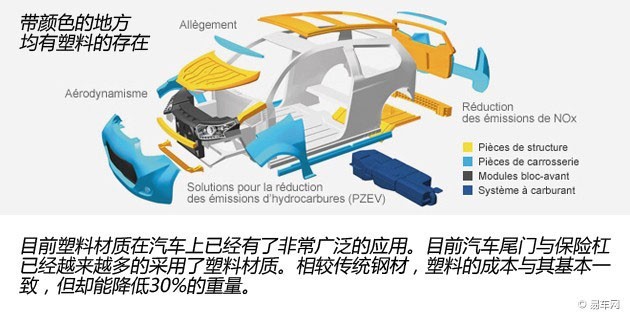 最后我們來說說塑料車身。其實塑料對于車身的應用遠比你想象的高。目前汽車尾門與前保險杠基本已經(jīng)普及了塑料材質(zhì)。相比鋼材,同樣大小的塑料可以減重20%到30%。此外,塑料件在設計中更加靈活、可以比鋼板做的更加復雜。最最重要的是在造價方面,塑料可以做到和傳統(tǒng)鋼材相同的成本。 本文來自123