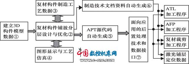 先進(jìn)的復(fù)材結(jié)構(gòu)件鋪層和纖維鋪放的分析、仿真和編程工具軟件通常能支持ATL/AFP應(yīng)用,并適應(yīng)不同類型的復(fù)材鋪放應(yīng)用。圖8所示為典型的ATL/AFP機(jī)床離線編程系統(tǒng)基本組成框圖。