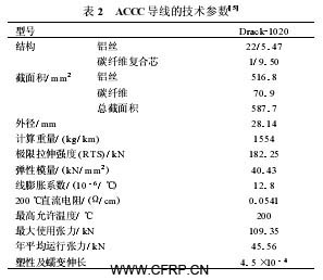 表 2 列出了 ACCC導線的技術(shù)參數(shù) ,以供制造和使用時參考。