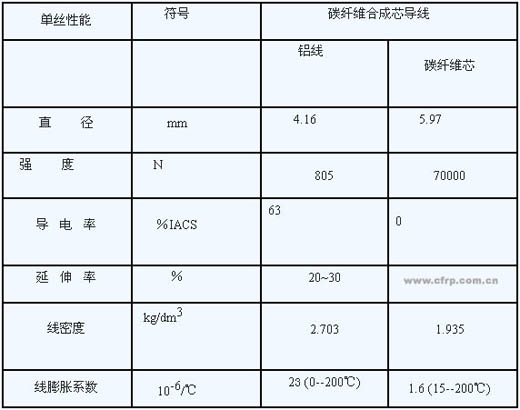 4.1.5 碳纖維合成芯導(dǎo)線參數(shù)表