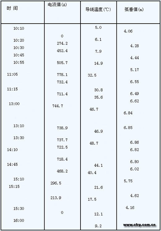 (2)夏季試驗(yàn):測量檔距 289 米;環(huán)境氣溫:上午陰28℃,下午晴32℃。