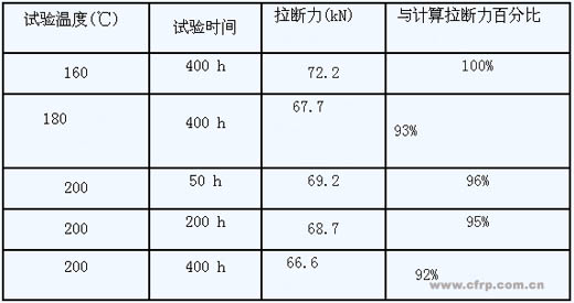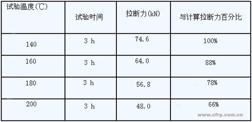 結(jié)果表明,碳纖維復(fù)合芯經(jīng)過不同加熱溫度和不同加熱時間后,恢復(fù)正常溫度后,芯仍能保持不小于90%計算拉斷力的拉力。
