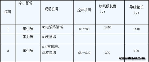 選擇和布置牽張場。采用一臺牽引機(jī)、一臺張力機(jī)進(jìn)行導(dǎo)線展放施工,一牽一展放方式。為了避免ACCC導(dǎo)線與原線路舊導(dǎo)線之間的磨碰。本工程利用原線路LGJ-185導(dǎo)線作為牽引繩張力展放ACCC導(dǎo)線。