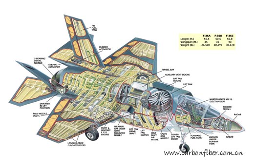 對于戰(zhàn)斗機制造商來說,最大的挑戰(zhàn)莫過于利潤問題。因此,必須在飛機的每個部件,哪怕極小的一個零部件,也要盡量做到成本優(yōu)化。也許正是碳纖維復合材料成就了F-35戰(zhàn)機:超過35%機身結構件和機體表面都使用了碳纖維復合材料。機身、機翼和尾翼來自不同的供貨商,對于洛克希德公司來說,他們面臨的最大挑戰(zhàn)就如何有效控制機身復合材料蒙皮的厚度。