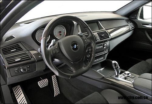 寶馬X6 M的車內(nèi)部分,方向盤以及儀表臺(tái)等碳纖維處處可見,凸顯大廠風(fēng)格。