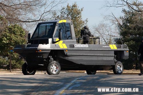 吉布斯公司表示,他們研制的兩棲車Phibian水上最高時(shí)速可達(dá)到48公里/小時(shí),陸上速度可達(dá)到能跑高速的程度。這家公司希望Phibian采用的新設(shè)計(jì)以及花費(fèi)數(shù)百萬美元打造的技術(shù)能夠讓這款兩棲車不被戴上“新奇車型”的帽子,為應(yīng)用于執(zhí)法部門和軍隊(duì)鋪平道路。