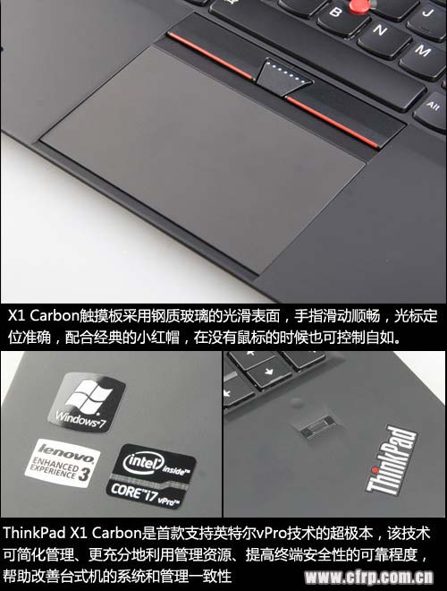 當(dāng)然作為一款專門面向商務(wù)用戶的產(chǎn)品,英特爾vPro是必不可少的一部分,該技術(shù)可簡化管理、更充分地利用管理資源、提高終端安全性的可靠程度,幫助改善臺式機(jī)的系統(tǒng)和管理一致性。ThinkPad X1 Carbon是第一款支持英特爾vPro技術(shù)的超極本,所以我們把它定義為首款專門針對商務(wù)用戶打造的超極本,那么接下來我們就一起來詳細(xì)了解一下ThinkPad X1 Carbon。