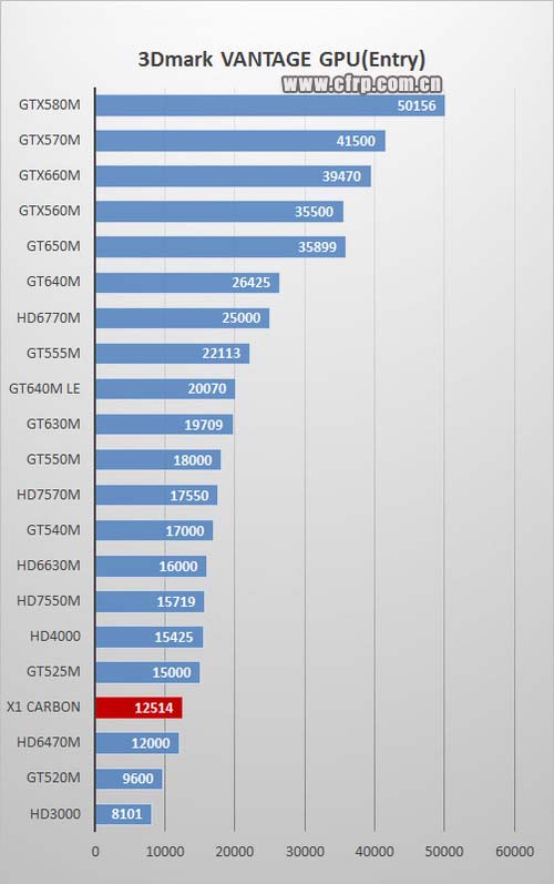 對于機(jī)身厚度不足18mm的超極本來說,由于機(jī)身內(nèi)部空間非常有限,為保證整機(jī)穩(wěn)定性,通常不會采用獨(dú)立顯卡,所以采用HD4000核心顯卡的ThinkPad X1 Carbon游戲性能非常有限,其3Dmark VANTAGE GPU項(xiàng)的得分,雖然與上一代核心顯卡HD3000相比性能的提升非常明顯,但和新一代獨(dú)立顯卡還存在較大的差距,不過仍然可在中低畫質(zhì)下滿足《街霸4》、《實(shí)況足球》等對顯卡性能要求不高的游戲。