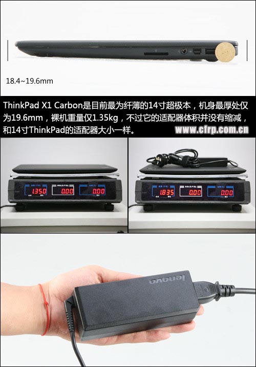 在厚度與重量方面,ThinkPad X1 Carbon超越了英特爾對超極本的要求,整機(jī)纖薄程度更加極致,其中最薄處僅為8mm,機(jī)身最厚的地方也僅為19.6mm,而且得益于碳纖維材質(zhì)的使用,它裸機(jī)重量1.35kg在超極本中也是相當(dāng)輕的水平,移動便攜性非常優(yōu)秀。