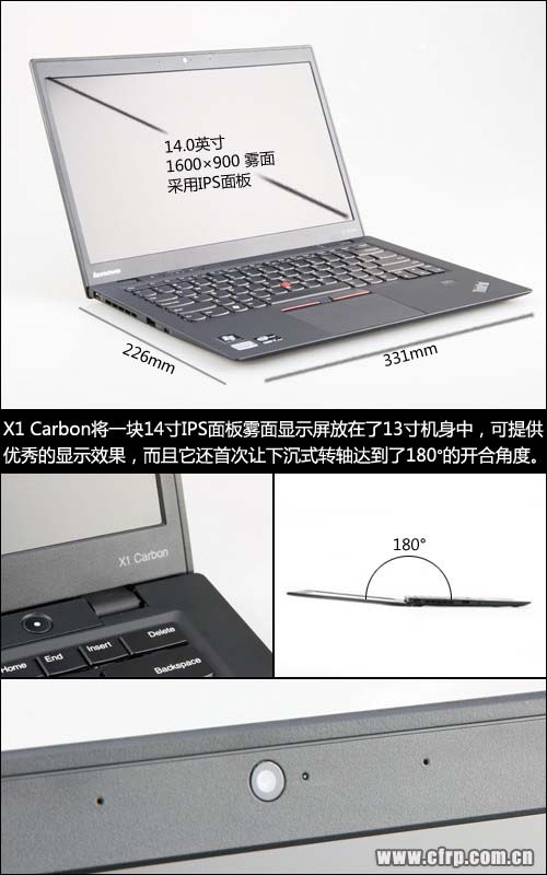 在屏幕的選擇上,X1 Carbon拋棄了X1上采用的無界金剛屏,與大多數(shù)高端商務(wù)筆記本一樣配備防眩光霧面顯示屏,采用窄邊框設(shè)計(jì),使13.3寸的機(jī)身可以容納14寸顯示屏,而且屏幕分辨率達(dá)到1600×900,顯示的內(nèi)容更加豐富,且X1 Carbon的屏幕為IPS面板,與大多數(shù)筆記本搭載的TN面板相比,可提供更大的可視角度和更真實(shí)的色彩表現(xiàn)。