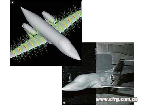 在微調(diào)引擎位置的同時(shí),通過反覆進(jìn)行數(shù)值模擬(a)和風(fēng)洞實(shí)驗(yàn)(b)找到了最佳位置。