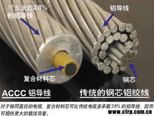 我國輸電電網(wǎng)架設(shè)廣泛采用的ACSR,在超負(fù)荷運(yùn)行時(shí)發(fā)生電纜下垂而影響生產(chǎn)用電安全。據(jù)統(tǒng)計(jì),超長距離的線路輸電產(chǎn)生大量的電阻損耗,約占總電能損耗的15%。采用以高性能環(huán)氧樹脂制造的碳纖復(fù)合芯電纜(ACCC)可以減少電纜弛度,提高輸電效率。 copyright 123456