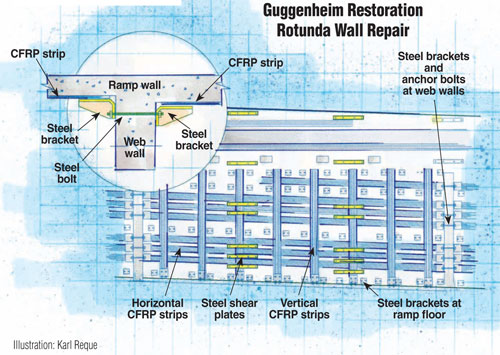 混凝土結(jié)構(gòu)加固修補(bǔ)配套樹脂系統(tǒng)包括底層涂料,用于滲透過混凝土表面,促進(jìn)粘結(jié)并形成長期持久界面的基礎(chǔ);油灰,用于填充整個(gè)表面空隙并形成平整表面以便使用碳纖維片材;浸漬樹脂或粘結(jié)樹脂,前者用于碳纖維布粘貼,后者用于碳纖維板粘貼。