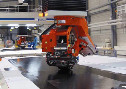 此類設(shè)備采用150mm或300mm帶寬的標(biāo)準(zhǔn)碳纖維帶子,具有非常高的生產(chǎn)效率和最佳的壓實(shí)能力,在生產(chǎn)中獲得了成功應(yīng)用,超過34臺的此類設(shè)備已經(jīng)投入運(yùn)行最長達(dá)13年以上。這種鋪帶機(jī)的典型應(yīng)用是制造水平尾翼、襟翼、方向舵、升降艙、機(jī)翼等飛機(jī)部件,基本上已成為制造上述所有部件的標(biāo)準(zhǔn)技術(shù)方案。