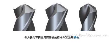 針對不同的材料和切削工況,需要提供不同鉆尖形式和材質(zhì)的具有PCD 涂層的標(biāo)準(zhǔn)、半標(biāo)準(zhǔn)和定制品鉆頭。精心開發(fā)的鉆尖,可以作為CFRP 高纖維基或高樹脂基的復(fù)合材料的首選,同時也可以加工復(fù)材金屬疊板材料。