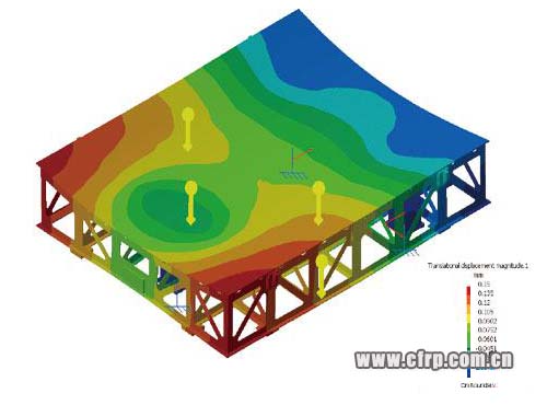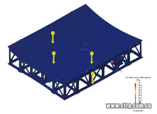 目前國內(nèi)的復(fù)合材料成型模具一般都是通過保守估計的方法設(shè)計,沒有通過強(qiáng)度分析優(yōu)化,這樣設(shè)計出來的模具,特別是大型制件的模具,通常都非常笨重,不僅耗費(fèi)大量材料,因熱容量升高也可能影響到固化反應(yīng),同時對運(yùn)輸、使用過程的相關(guān)設(shè)備噸位要求很高,大大增加了成本,甚至影響了制造能力。因此,減重是模具設(shè)計優(yōu)化的一個重要方面。減重的方法必須要通過合理的計算,否則會直接影響到模具的強(qiáng)度和剛度,導(dǎo)致使用過程中產(chǎn)生變形而影響制件質(zhì)量。同時,對于吊環(huán)、輪子、撐腳也需要進(jìn)行強(qiáng)度校核,以確保模具能夠安全地起吊和轉(zhuǎn)運(yùn)。