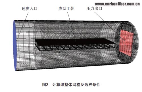 由經(jīng)驗(yàn)和工藝試驗(yàn)可知工裝的變形均在毫米量級(jí),工裝的尺寸在幾米至十幾米,工裝結(jié)構(gòu)變形不會(huì)對(duì)熱壓罐內(nèi)的氣體流動(dòng)產(chǎn)生明顯影響。由于流體計(jì)算對(duì)網(wǎng)格要求較高,文中使用專業(yè)流體仿真軟件FLUENT進(jìn)行工裝及熱壓罐內(nèi)整個(gè)流場(chǎng)的網(wǎng)格劃分,如圖3所示。對(duì)工裝建立的有限元模型既可以適用于溫度場(chǎng)的計(jì)算,也可以用于工裝的結(jié)構(gòu)變形計(jì)算。熱壓罐工藝規(guī)范簡(jiǎn)化如圖4所示,溫度場(chǎng)計(jì)算所用相關(guān)材料參數(shù)如表1所示。