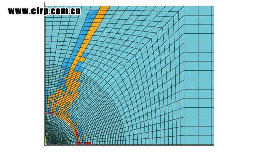 挖補(bǔ)修理數(shù)值研究的主要目的是與試驗(yàn)研究的結(jié)果進(jìn)行對(duì)照(圖2),得到試驗(yàn)中無(wú)法采集或者無(wú)法觀察到的力學(xué)性能表征。數(shù)值研究能夠幫助試驗(yàn)研究定位失效破壞的損傷源位置,損傷發(fā)展的路徑,膠層中損傷的累積擴(kuò)展情況等。