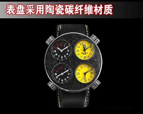 他們的靈感來自四個(gè)缸體的手表獨(dú)具創(chuàng)意,四個(gè)表盤分別采用了四種不同的瑞士機(jī)械走時(shí)系統(tǒng),這款陶瓷碳纖維手表的表殼是由Brembo使用同制造制動(dòng)碟一樣的工序加工出來的,短小的碳纖維中還整合了高強(qiáng)度的陶瓷。