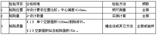 ?。?)、檢驗:粘貼完工后,按規(guī)程進行檢驗。
