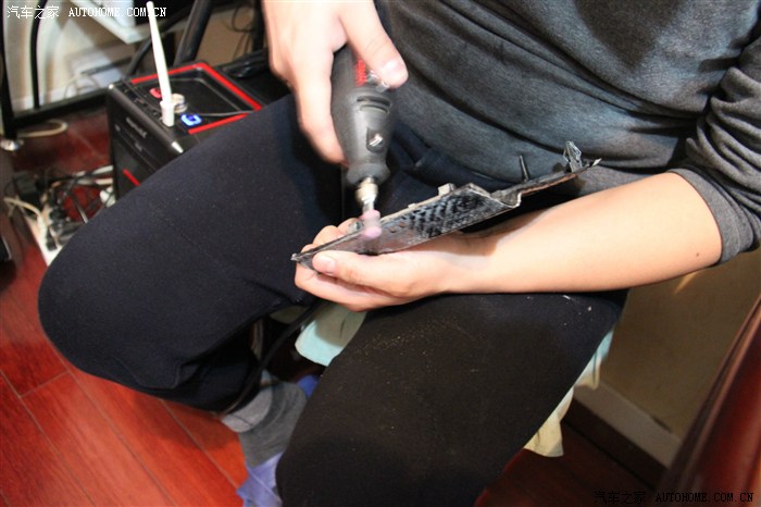 1. 用電磨摳孔打磨的時(shí)候,一定要穿長袖的衣服,袖口扎緊,并且?guī)峡谡?,切記帶上口罩。上圖我就因?yàn)闊?,把袖子挽起來了,結(jié)果打磨的粉塵落在了我手臂上,弄得我很癢。不過解決方法我也找到了,就是用搓澡巾濕巾搓吧。